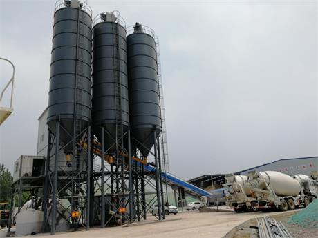 混凝土攪拌站:HZS60D(斜皮帶) 產(chǎn)品結構特點: ⑴機架:機架分上機架和下機架。上機架頂部安裝水泥秤、水秤及其支架、砂石集料斗及支架,上機架中部安裝攪拌主機,下部安裝卸料斗;下機架是上機架的支撐部件,一二層平臺之間設有扶梯,主樓上半部采用彩板封閉。 ⑵骨料供給系統(tǒng):PL1600A型配料機由倉架、倉體、皮帶機、計量斗、計量杠桿及傳感器組成。倉體是3個8m3的儲料倉及圍板,倉下口敞開式,骨料分別由3臺皮帶輸送機輸送至計量斗,計量方式是計量杠桿---傳感器---電子秤,自動完成砂、石等物料的配料。計量斗下部是1臺皮帶機,將骨料送至18o皮帶機。18o皮帶機由電動滾筒、槽型托輥、下托輥、清掃器、輸送帶、張緊裝置、接料槽和機架組成。將骨料送至集料斗。集料斗由斗體、支架、開關門裝置、防塵罩組成。將骨料投入攪拌機。 ⑶水泥供給系統(tǒng):水泥(粉煤灰)筒倉由支架、筒體、卸料門、除塵器、破拱裝置、輸料管等組成。水泥經(jīng)敞開卸料門進入螺旋輸送機。螺旋輸送機由整機和吊裝裝置組成。將水泥輸送至水泥秤。水泥秤由計量斗及拉桿、蝶閥、傳感器、除塵管組成。將水泥投入攪拌機。 ⑷水供給系統(tǒng):水箱或水池,根據(jù)水的資源條件用戶自備水路系統(tǒng)由水泵及支架、水管及管件等組成。將水輸送至水秤。水秤由計量斗及拉桿、蝶閥、傳感器組成。將水投入攪拌機。 ⑸液態(tài)外加劑供給系統(tǒng):儲料桶由兩套儲料桶及支座、不銹鋼泵及支座、排液管閥等組成。管路系統(tǒng)由膠管、管件、閥門、電磁閥組成。將液態(tài)外加劑送至其計量秤。外加劑計量秤由計量斗及拉桿、蝶閥、傳感器及支架組成。將液奢望外加劑投入水秤,與水一并投入攪拌機。 ⑹壓縮空氣供給系統(tǒng):由空壓機、三聯(lián)體、管路、電磁換向閥、快換接頭、空氣過濾器等組成。將壓縮空氣送至氣缸、蝶閥、破拱等用氣點。